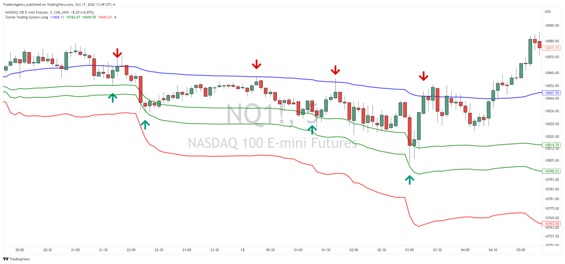 For the remainder of the day, the market rallied above the blue and green Tunnel Trader lines without providing any entry opportunities.